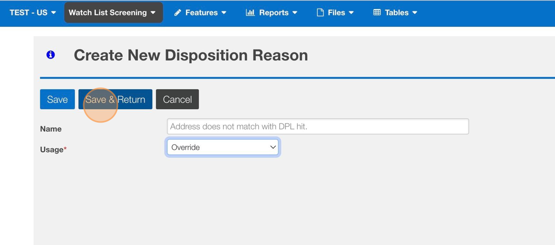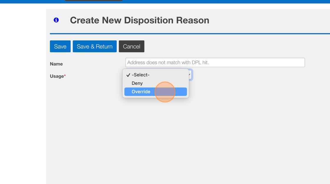 6. Click Usage and set the reason to be used as justification to Deny or Override