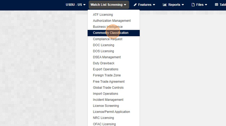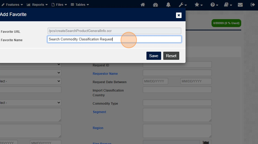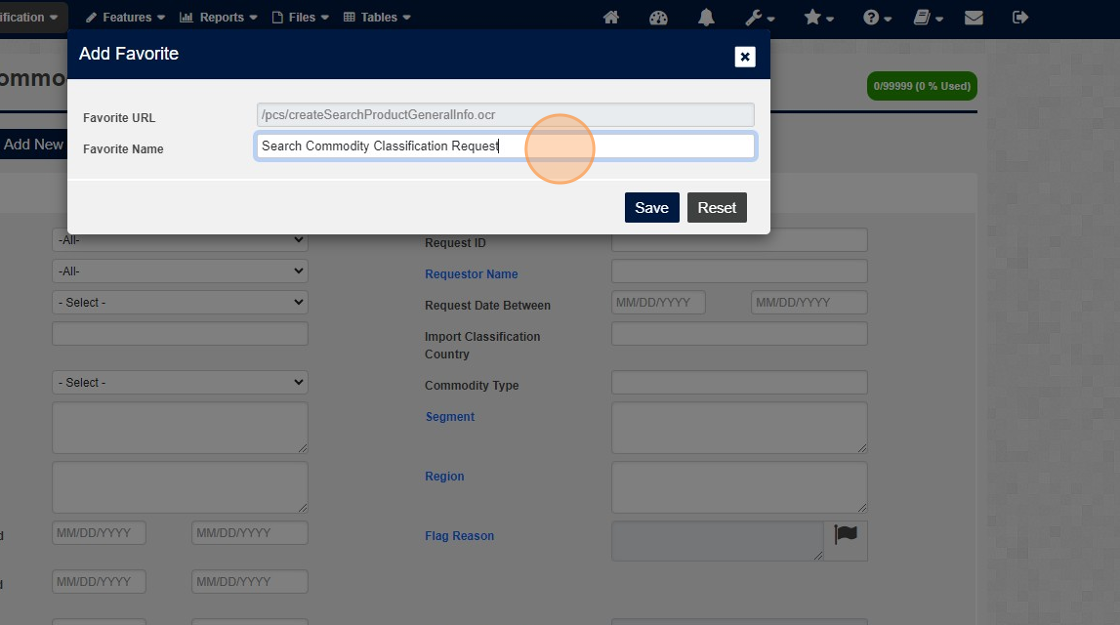 3. Click "Commodity Classification" (or any page you want to add as a favorite)
