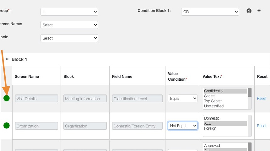 10. Green dots will indicate a workflow condition has been configured.