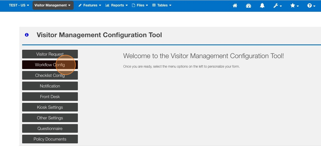 4. Click "Workflow Config" from the left hand vertical Menu