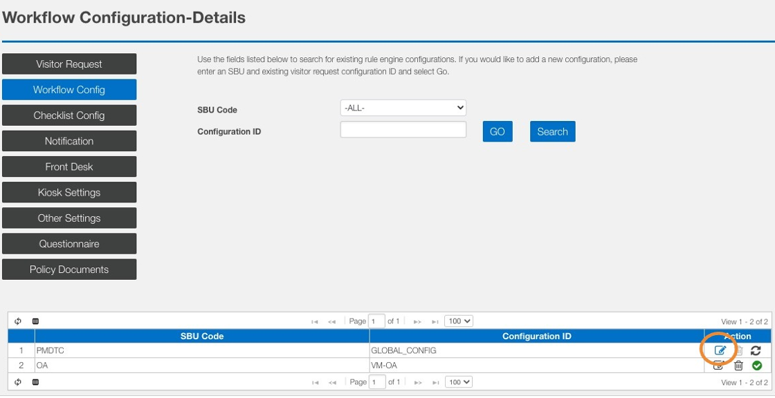 6. Click the Edit Icon to open an existing configuration.