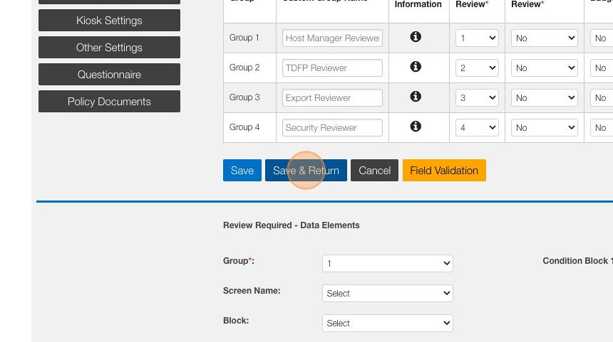 11. Click "Save & Return" or Click "Save" and Repeat these steps for additional groups.