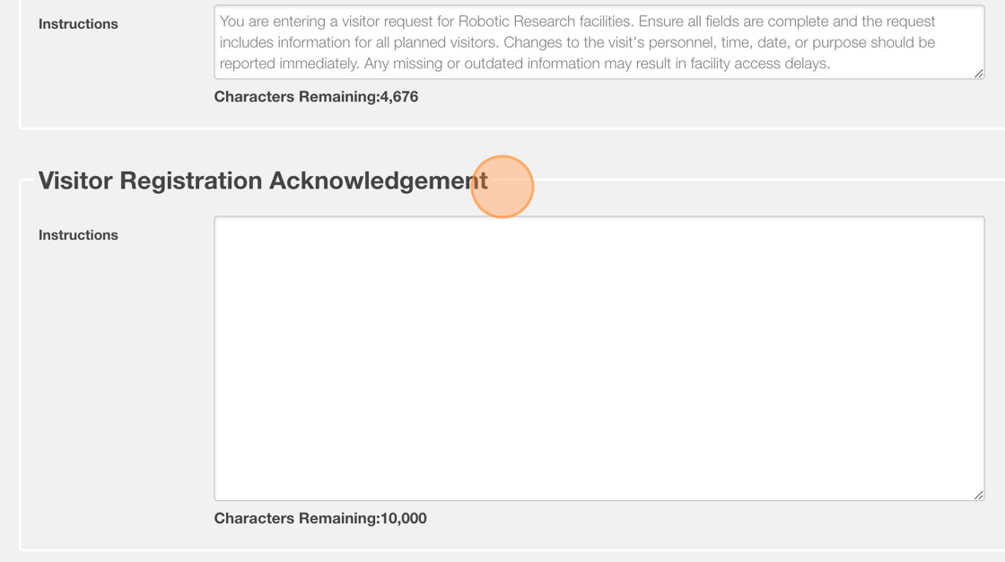 8. Enter desired text in the "Visitor Registration Acknowledgement
