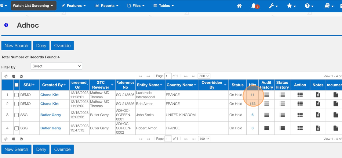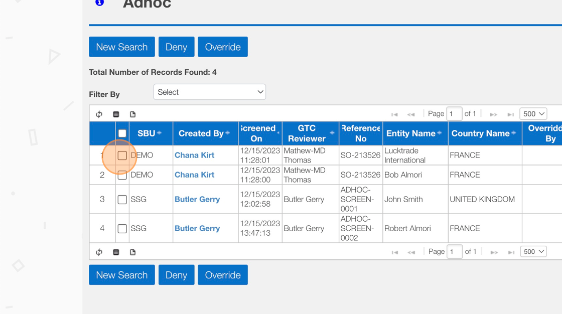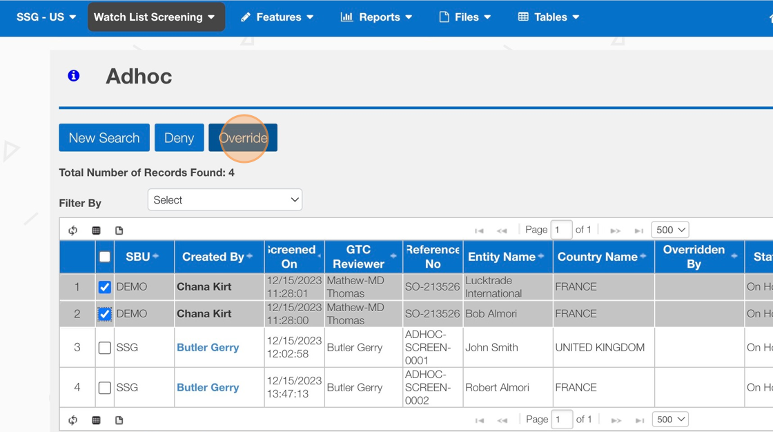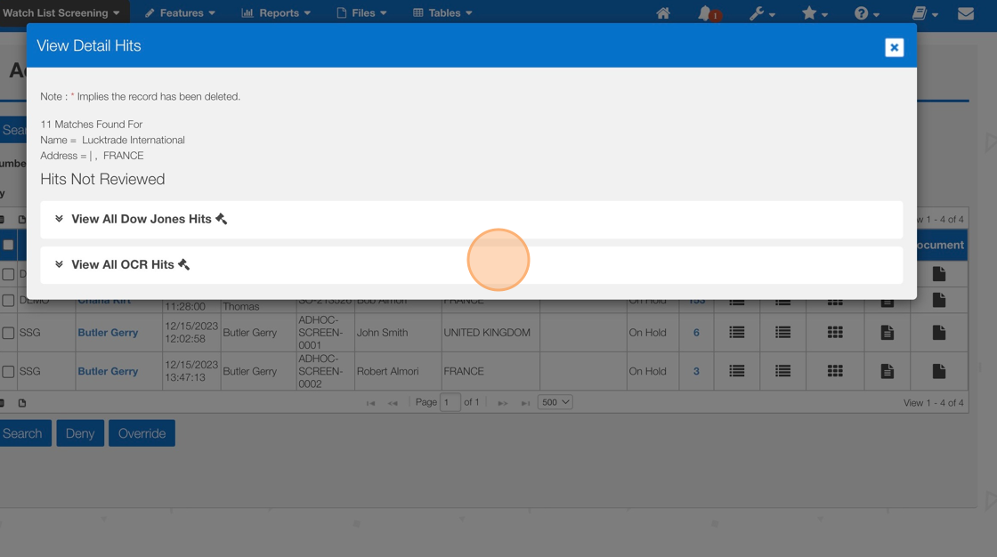 How to Deny/Override - AdHoc Screening Result Screen