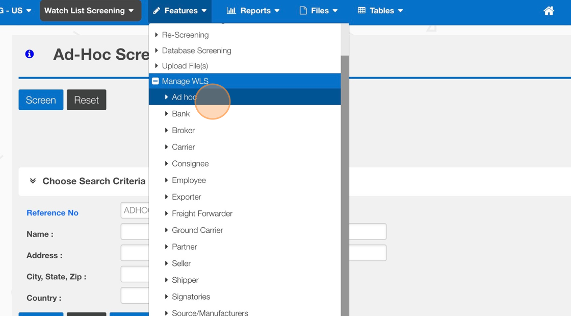 1. Click Features > Manage WLS > Ad Hoc