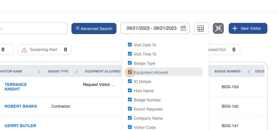 This article covers the steps required to check out a visitor. Just so you know, a visitor can be located using the Checked In or Not Checked Out filters. Steps: 1. Click the "Front Desk" dashboard icon. 2. Click "Checked In" Visitors can also be ...