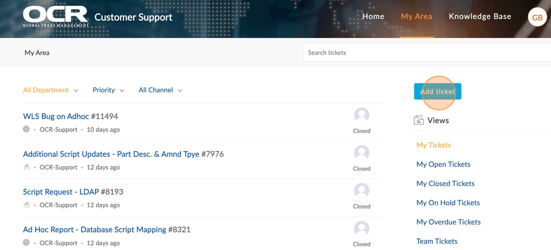 1. Log into OCR Zoho Desk portal: