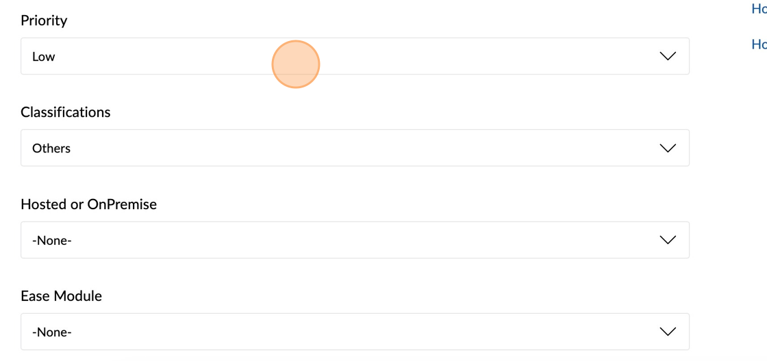 5. Establish a priority, classification, hosted or on-prem, and EASE Module using the dropdowns.