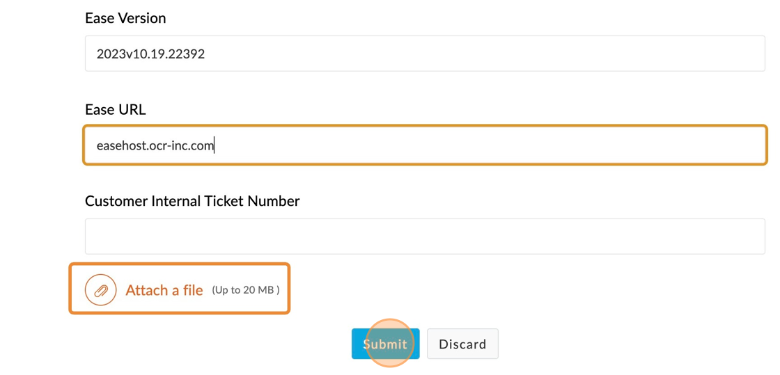 6. Please provide the EASE Version, your OCR EASE log-in URL, and any supporting attachments. Click "Submit"