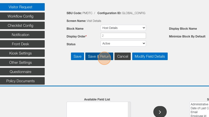 11. Click "Cancel" to close the View/Modify Field Property window. Click "Save & Return" to complete the process.