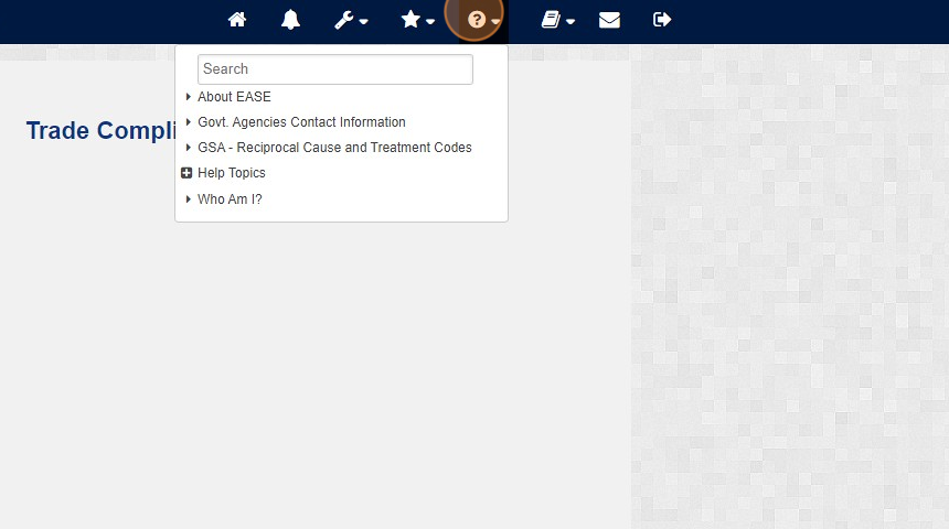12. Clicking the question mark icon lets you view your EASE version, contact info of Govt Agencies and multiple help topics.