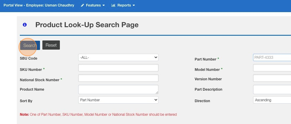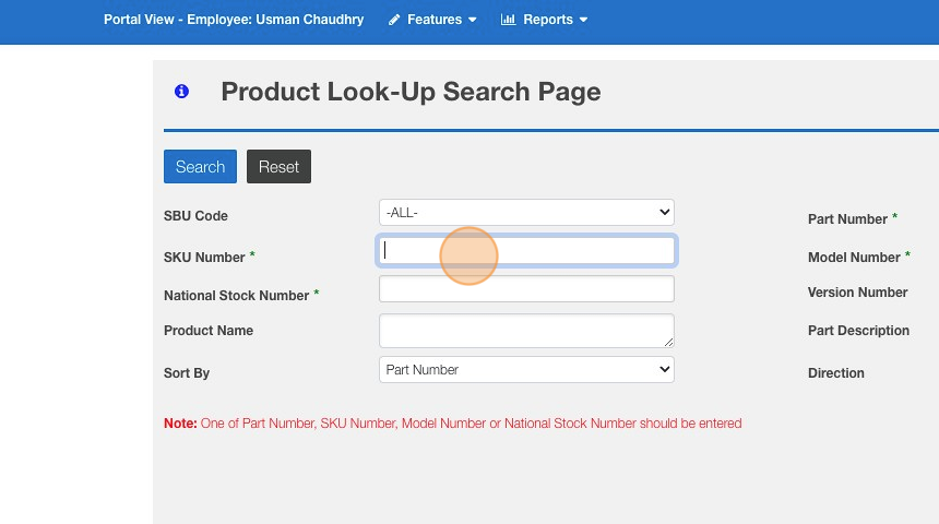 Tip: Tip! One of following must be entered: Part Number, SKU Number, Model Number or National Stock Number.