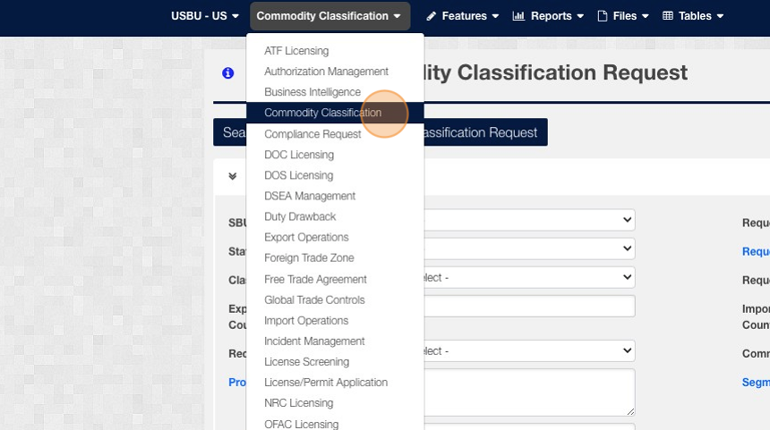 2. Click "Commodity Classification"