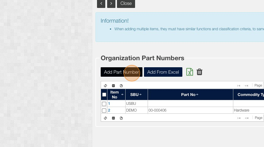 6. Click "Add Part Number"